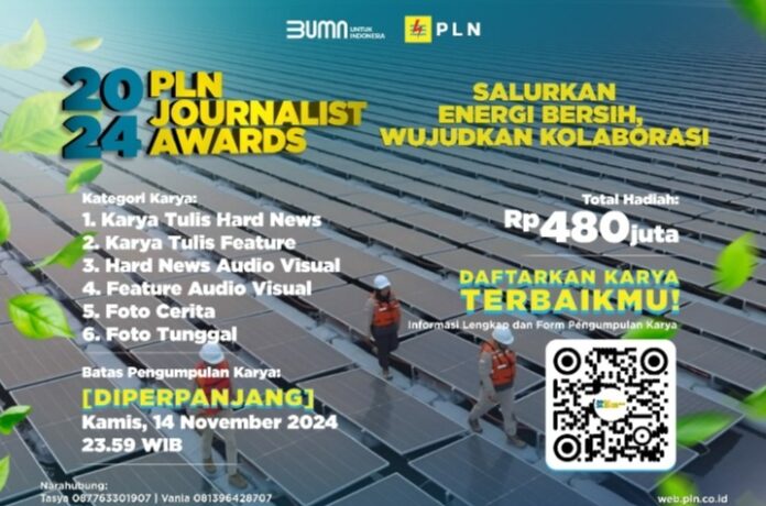 Menyambut tingginya antusiasme para jurnalis dalam berpartisipasi pada ajang PLN Journalist Award (PJA) 2024, PT PLN (Persero) memperpanjang masa pendaftaran, yang semula berakhir pada 31 Oktober 2024 menjadi 14 November 2024.