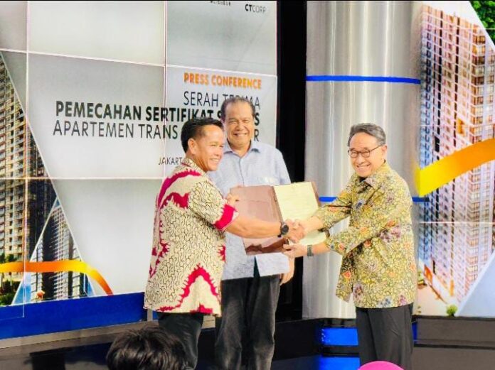 Badan Pertanahan Nasional (BPN) Kota Depok secara resmi menyerahkan 3.216 sertifikat untuk unit Apartemen Trans Icon yang berlokasi di kawasan Transpark Cibubur pada Selasa (14/01/2025).
