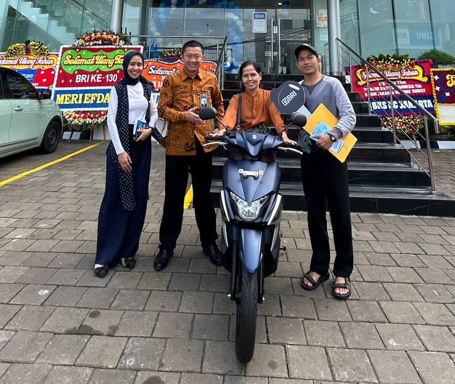 “Alhamdulillah nasabah kami memenangkan sepeda motor, selamat kepada pemenang,” ujar Pimpinan BRI BO Jakarta Warung Buncit, Ahmad Sudiyana Suwandi.