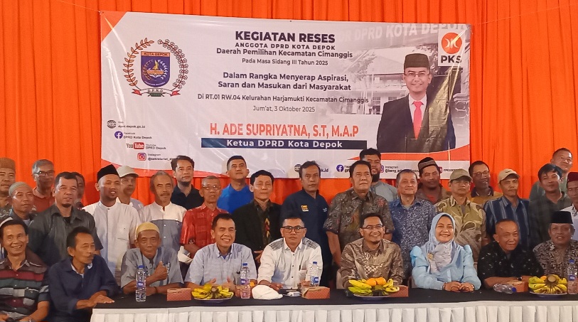 Ketua DPRD Kota Depok, Ade Supriyatna, menyerap beragam aspirasi warga dalam kegiatan Reses Masa Sidang III Tahun 2025 di Kavling Pertamina, Kelurahan Harjamukti, Cimanggis, Jumat (3/10/2025).