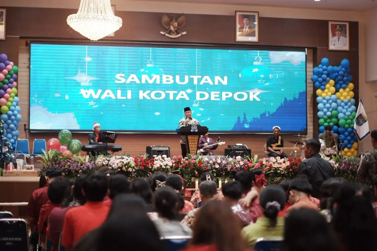 Wali Kota Depok, Supian Suri menghadiri perayaan Natal pegawai kristiani di lingkup Pemerintah Kota (Pemkot) Depok yang digelar di Gedung Dibaleka II Lantai 10, Jumat (19/12/2025). Kehadiran beliau menjadi bukti nyata komitmen Pemkot Depok dalam merawat nilai-nilai toleransi serta menjamin kesetaraan hak seluruh aparatur sipil negara tanpa memandang latar belakang agama yang dianut.