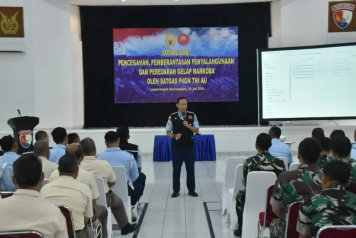 suaradepok.com – Lanud Husein Sastranegara berkomitmen penuh dalam mendukung memerangi narkoba, baik di lingkungan internal maupun di masyarakat luas. Kegiatan sosialisasi ini adalah bagian dari upaya kami untuk mendukung program pemerintah dalam memberantas narkoba, disampaikan Komandan Lanud Husein Sastranegara Kolonel Pnb Alfian. S.E. dalam sambutannya saat membuka acara sosialisasi anti narkoba dari Tim Satgas P4GN ( Pencegahan, Pemberantasan, Penyalahgunan dan Peredaran Gelap Narkoba) Mabesau Jakarta, bertempat di Gedung Graha Antariksa Lanud Husein Sastranegara, Kamis(18/7/2024).