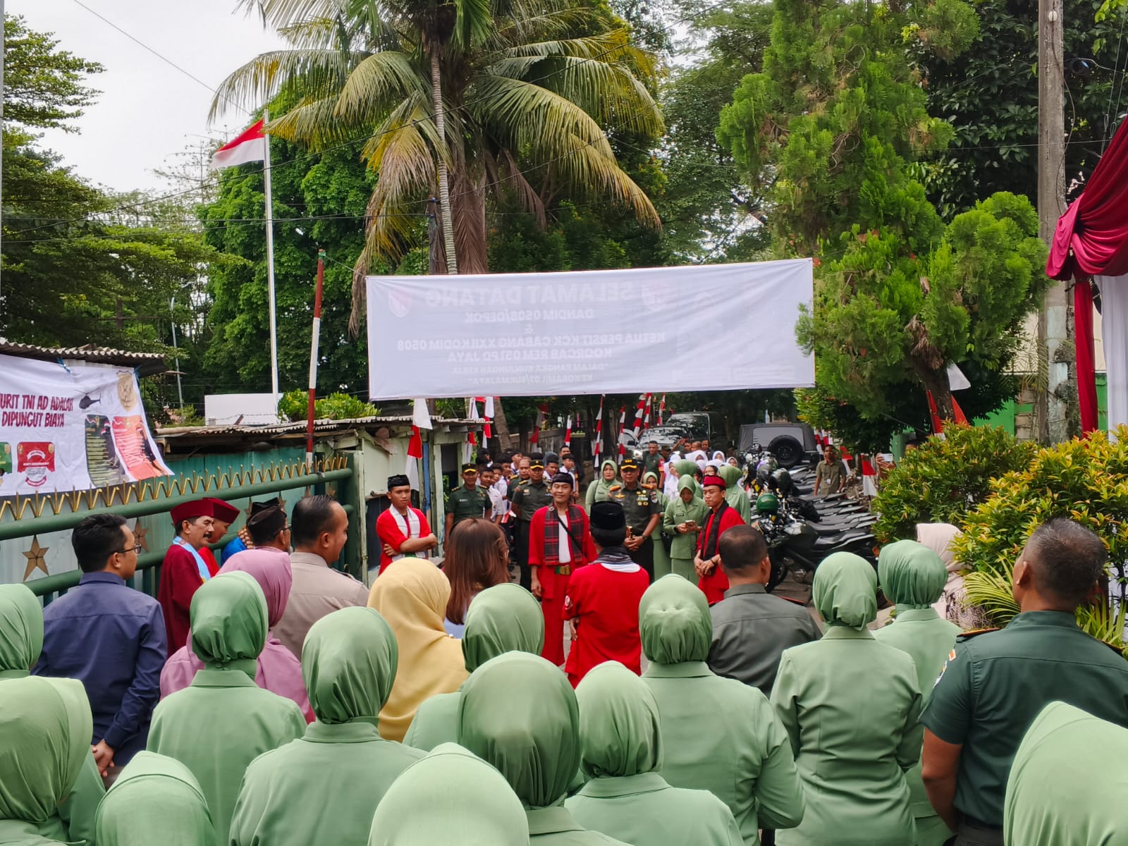 Kedatangan Kolonel Inf Triano Iqbal bersama istri dan rombongan setelah melewati palang pintu langsung disambut langsung oleh Danramil 03/Sukmajaya, Mayor Inf Suyono dan jajarannya.