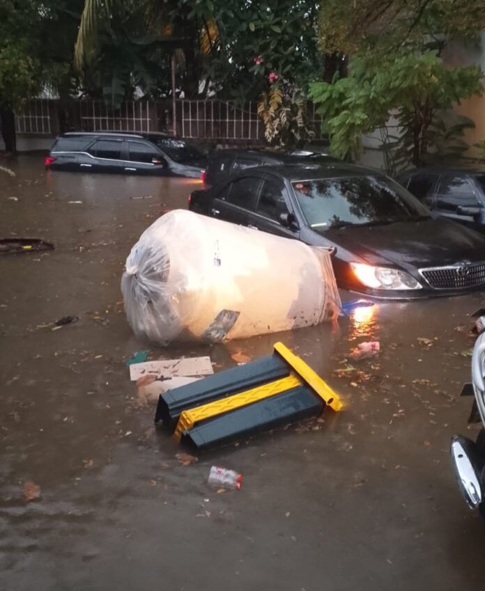 “Tadi sudah surut karena panas terik eh ini hujan lagi, petir. Duh, semoga tdk ada banjir lagi,” terangnya.